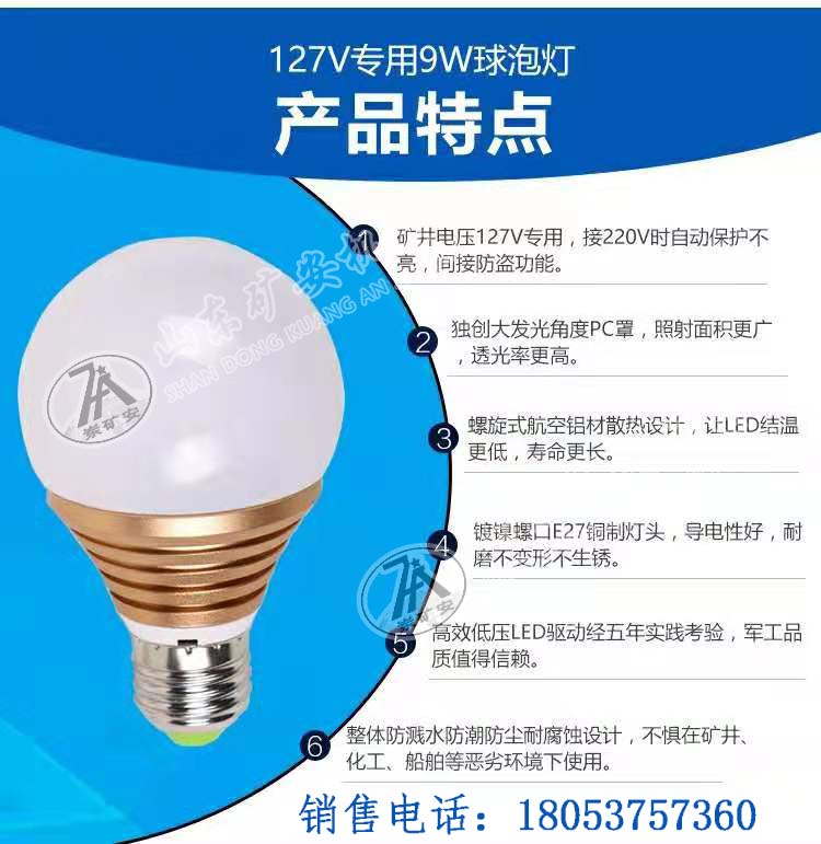 矿山用127V节能灯防水防潮和防水灯头,127V专用9W节能球泡灯防水,高亮节能led灯泡防潮