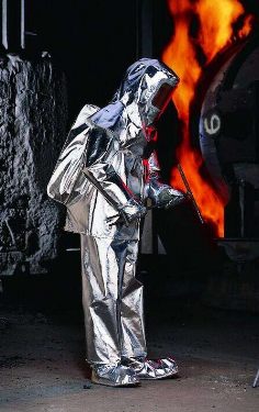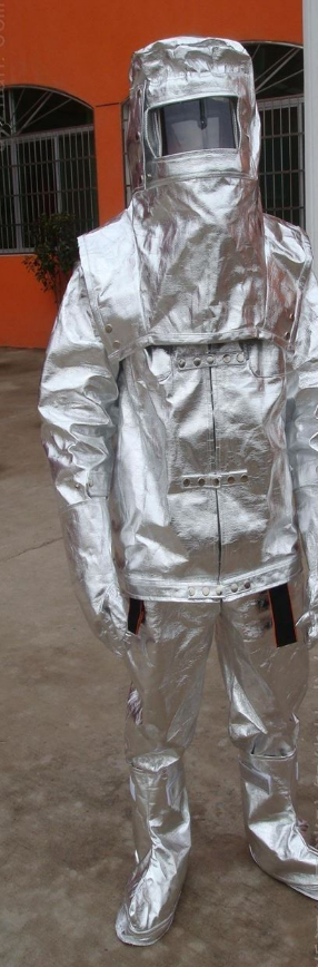 高性能的避火隔热服,可抵御1000℃的火焰,并能够有效防护高温水蒸汽的喷溅,该产品适合近火源使用,但不适合进入或穿越火源复合材料,全身式防护服外覆铝质保护层,服装前部拉链带有保护翻边和按扣,可分离式头罩,头部为镀金玻璃面窗 内置安全头盔,带呼吸器背囊。可以配合自给正压式呼吸器使用 整体产品包括五指手套及防护靴.