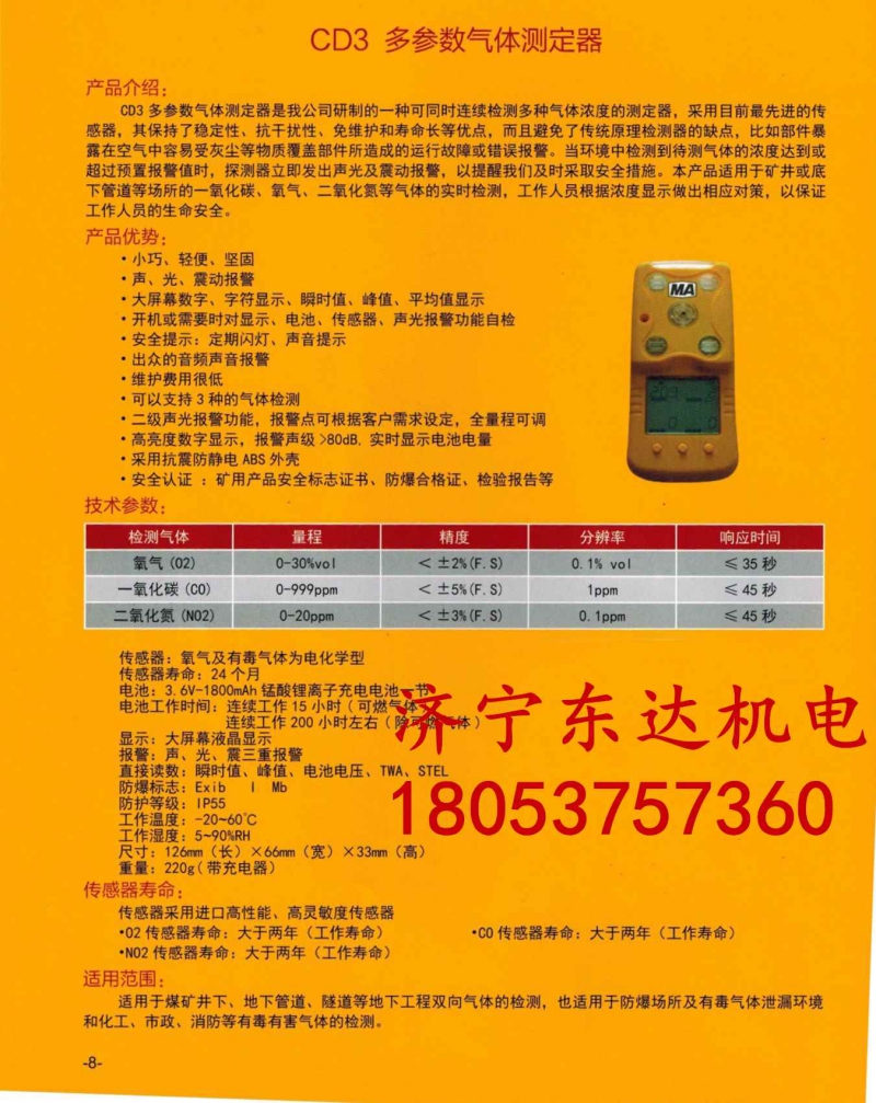 新款CD3多参数气体测定器,矿安认证氧气一氧化碳二氧化氮检测仪,金属矿二氧化氮氧气一氧化碳三合一气体检测仪
